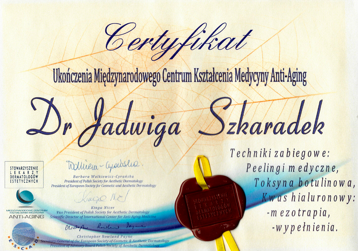 Jestem specjalistą medycyny rodzinnej.W roku 2011 Ukończyłam 2- letnie kształcenie podyplomowe Międzynarodowym Centrum Kształcenia Medycyny Anty-Anging prowadzone przez Stowarzyszenie Lekarzy Dermatologów Estetycznych w Warszawie. Od tego czasu wykonuje nieprzerwanie zabiegi z zakresu medycyny estetycznej. Zapraszam do gabinetu. Osoby zainteresowane proszę o maila na adres [email protected]
